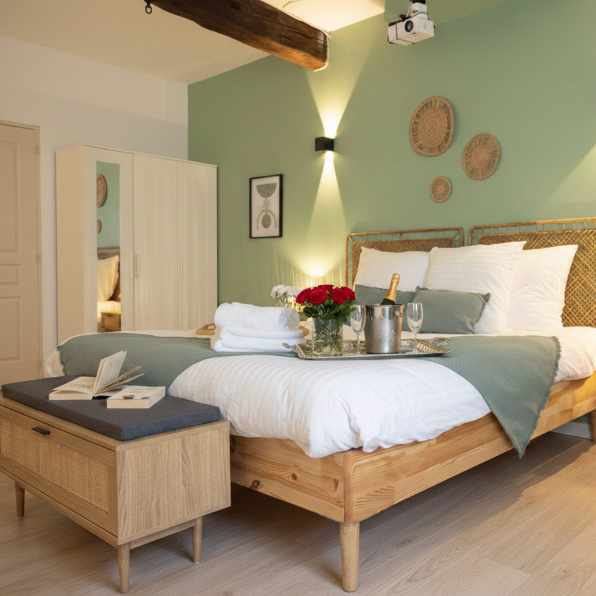 Une parenthèse délicate et haut de gamme : draps de lit et linge de qualité hôtelière fabriqués en France pour votre séjour dans votre suite appartement "L'instant suspendu", un T2 de 52 m2.